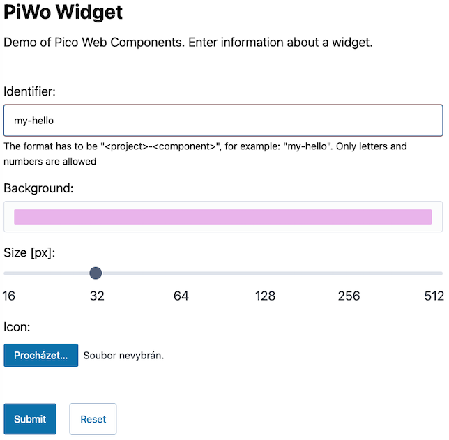 <piwo-button>Submit</piwo-button>